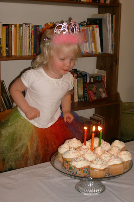 Devan gave her two rules for the day: No pacifiers and no cupcakes until the party. How did that go? She snuck two cupcakes before breakfast and only picked at her special birthday pancakes. For lunch we had beautiful "rainbow sandwiches."